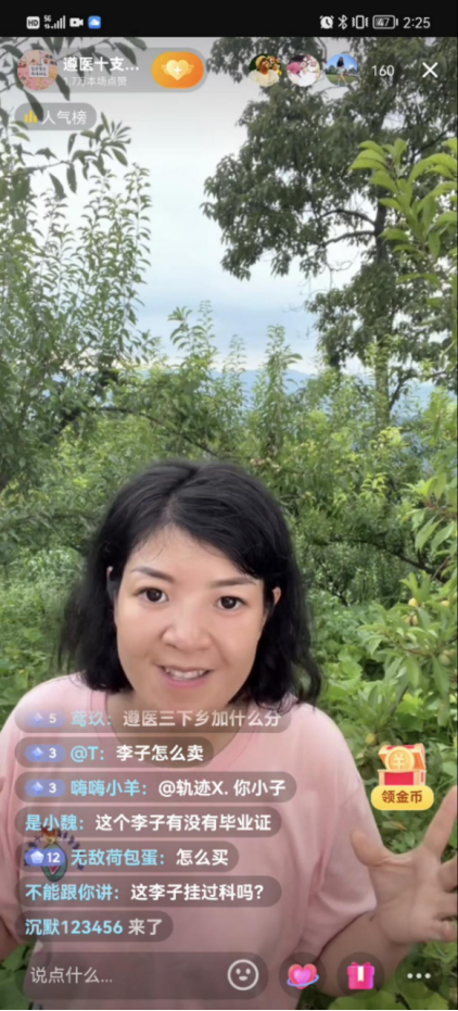 直播带货助力乡村振兴。下午,实践队员们走进汇川区山盆镇太坪村竹林湾脆李采摘示范基地,体验采摘脆李,亲身感受果农的辛苦劳作,并借助抖音平台以直播带货的方式帮助果农促销李子等经济果物。